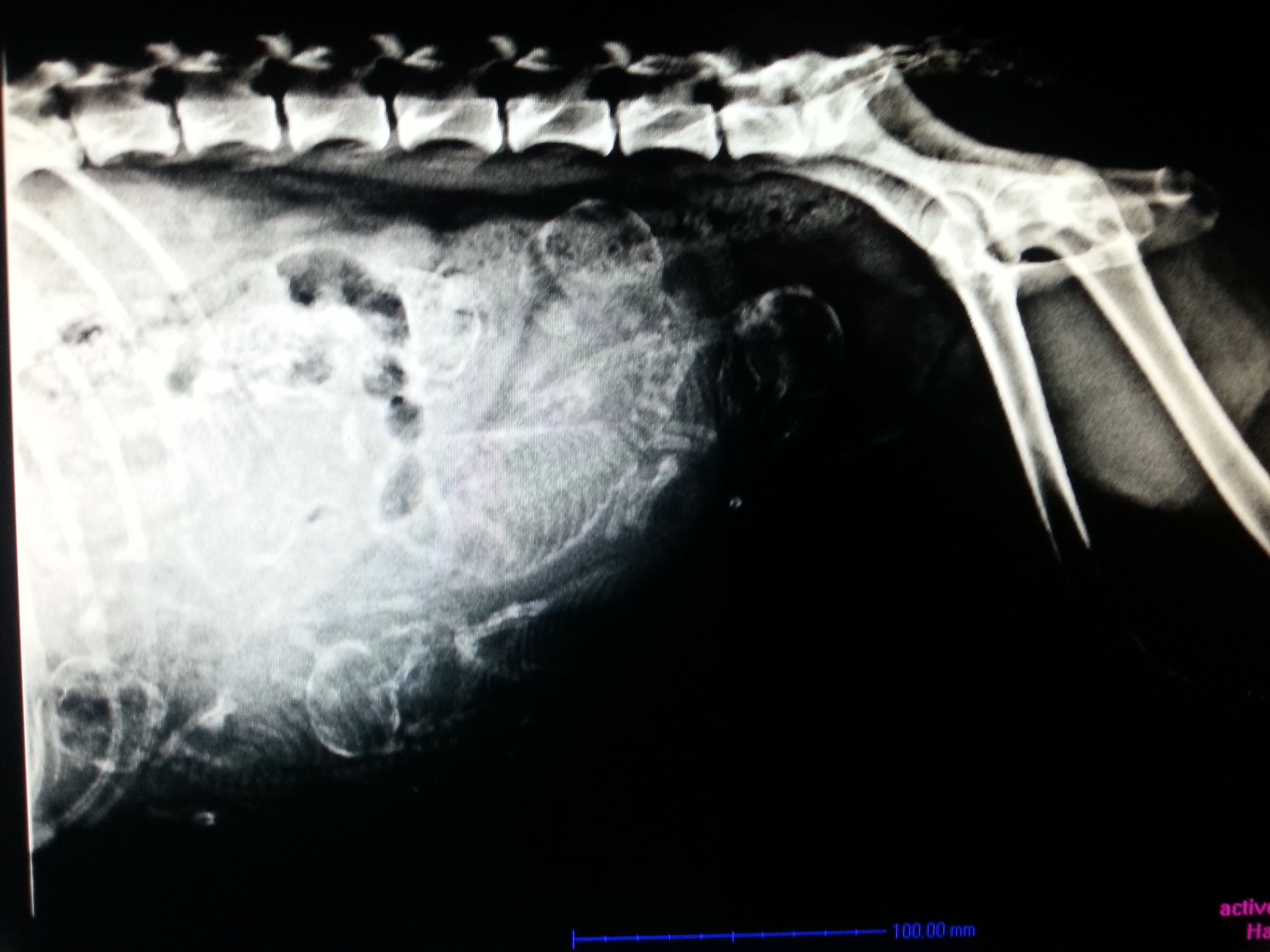 | Heute waren wir mit Cho noch einmal beim Tierarzt und haben ein Röntgenbild anfertigen lassen. Ihr dürft gerne raten und zählen wieviele Welpen ihr seht. Zudem messen wir seit heute regelmäßig Chos Temperatur. Lang ist es nicht mehr hin. Haltet uns die Daumen für eine reibungslose Geburt in ein paar Tagen ![]() |