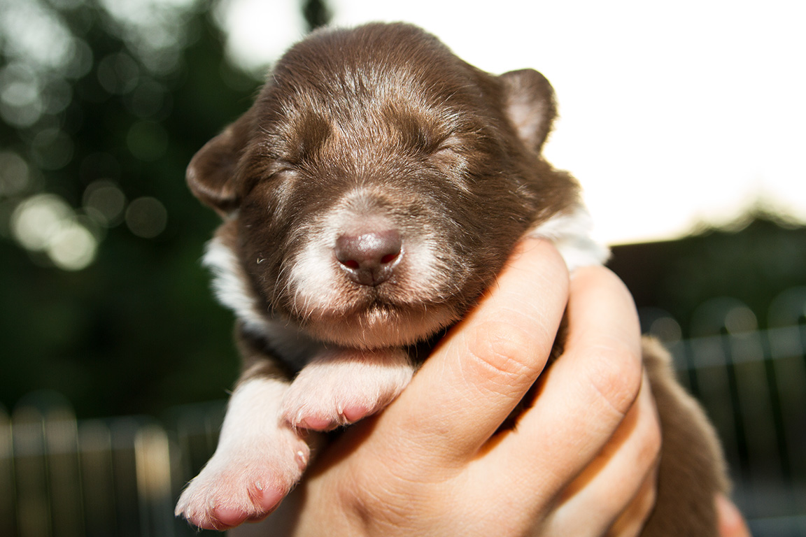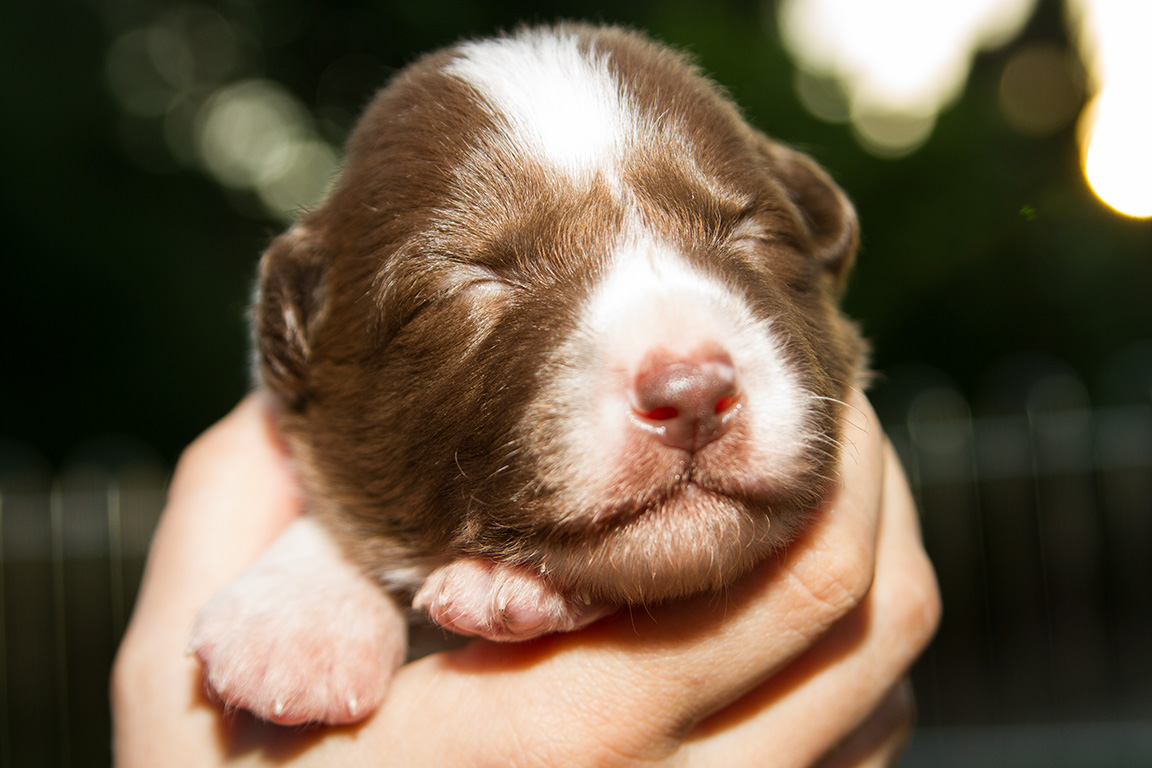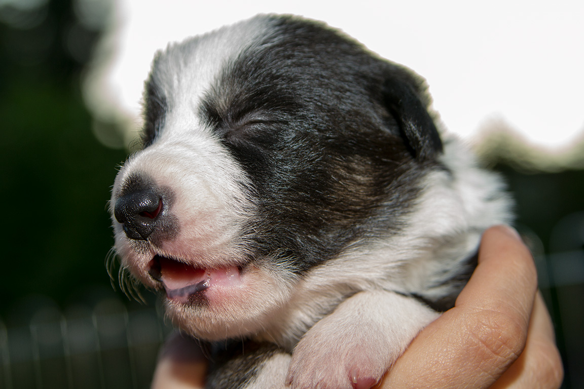 Am Samstag hat Cho zwischen 06:57 und 09:50 Uhr fünf (1/4) Welpen das Leben geschenkt. Das Geburtsgewicht der kleinen Mäuse liegt zwischen 322 g und 422 g.