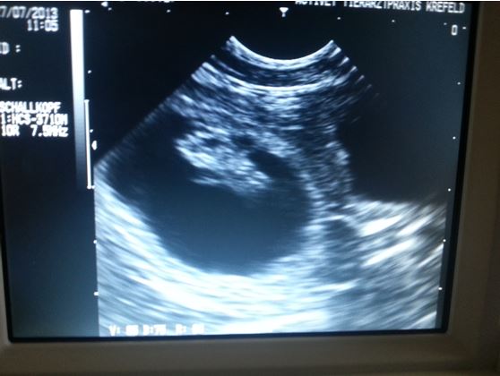 Gestern Morgen hatte Cho ihren Ultraschalltermin um zu überprüfen ob der Besuch bei Fox dieses Mal erfolgreich war. Dieses Mal dürfen wir die frohe Botschaft verkündigen. Cho ist tragend! Die Tierärztin war sehr zufrieden mit Chos Welpen. Die Welpen sind schon sehr gut entwickelt und sehr vital. Wir sind mehr als glücklich über diesen Befund. |
