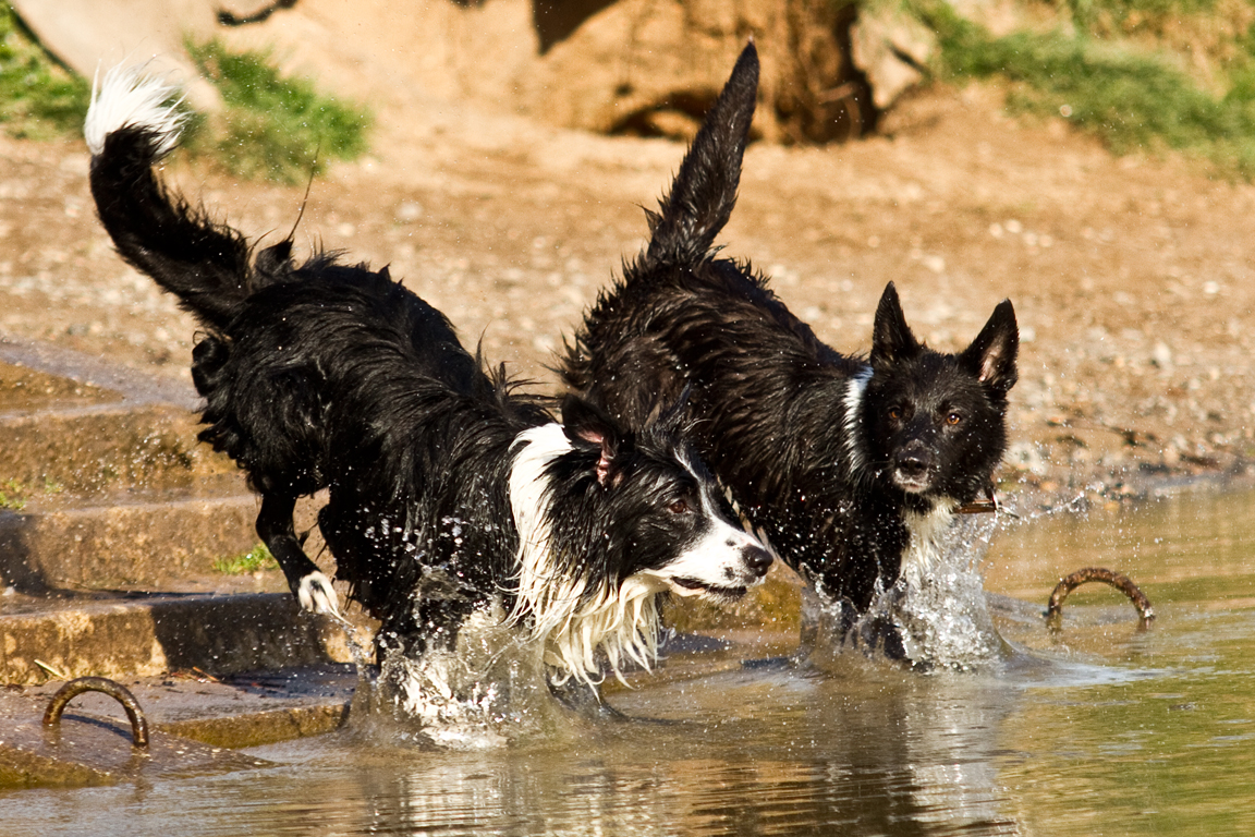 Gestern waren wir mit den Hunden am E-See. Auch wenn das Wasser noch sehr kalt war hatten die beiden eine Menge Spaß beim Toben und Planschen im kühlen Nass.
