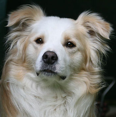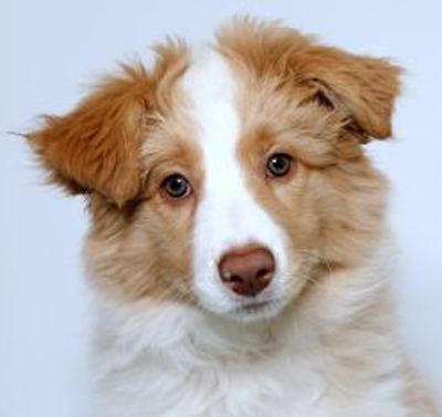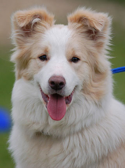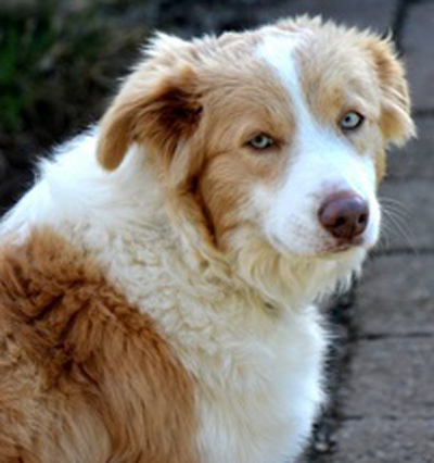 Dieser Hund ist genetisch Merlefarben. Da jedoch kein Eumelanin im Fell eingelagert wird kann die Merlezeichnung nicht erkannt werden. Aus diesem Grund sollten ee-redfarbene Hunde die ein merlefarbenes Elternteil haben auf Merle genetisch getestet werden bevor mit ihnen gezüchtet wird. |