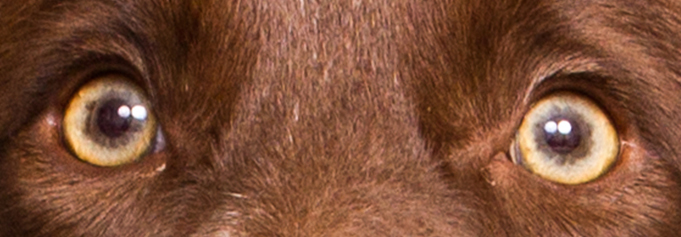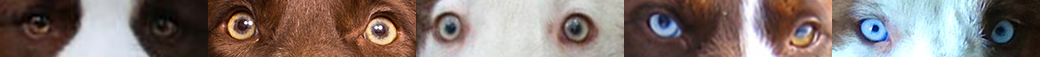 | Verschiedene Augenfarben bei brauner Pigmentierung. Bei braunen Hunden sind die Augen oft eher geblich bis grün. |