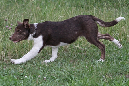 Für einen brindelfarbenen benötigt es auf dem K-Locus mindestens ein Kbr-Allel (ohne das Vorhandensein vom dominaten KB) und auf dem A-Locus eine "Allelform" von Zobel (AY oder aW) bei brauner Grundfarbe.