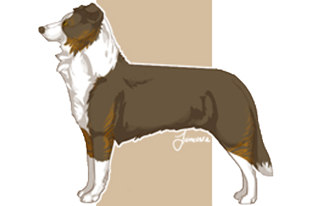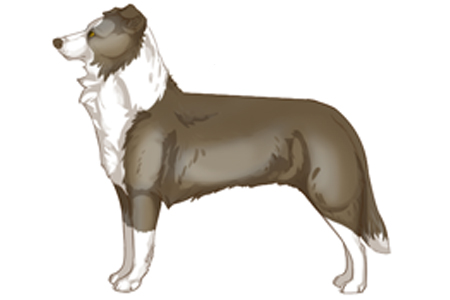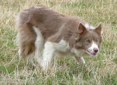 | Ein mischerbig wolfzobelfarbener Border Collie bei aufgehelltem braunem Pigment Gencode: bb/kyky/dd/aWat/mm/E- Offizielle Bezeichnung: Lilac Shaded-Wolfsable / Lilac Shaded-Wolfsable-White |