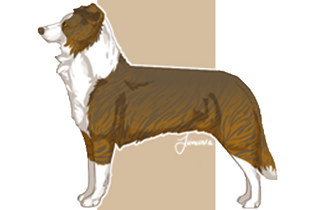 Ein Brindle-Tan Border Collie (Clear-Sable) bei aufgehelltem braunen Pigment Gencode: |