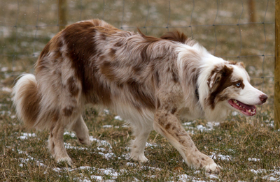 Mischerbig für das Merlegene Gencode: Offizielle Bezeichnung: Chocolate-Merle (auch Red-Merle wird häufig verwendet)