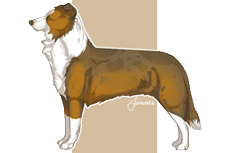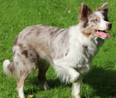 Im Standard steht die Augenfarbe sollte möglichst dunkel sein, jedoch passend zur Fellfarbe. Bei Merlefarbenen Hunden dürfen die Augen auch ganz blau oder blau-maromiert sein.