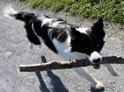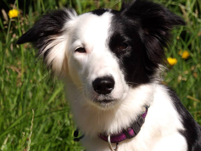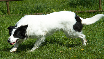 | Stark pigmentierter Border Collie Auf dem S-Locus liegen die Allelkombinationen: SS oder Ssi Das Fell ist vollständig pigmentiert. Maximal kleine weiße (unpigmentierte) Stellen sind im Fell zu finden. |